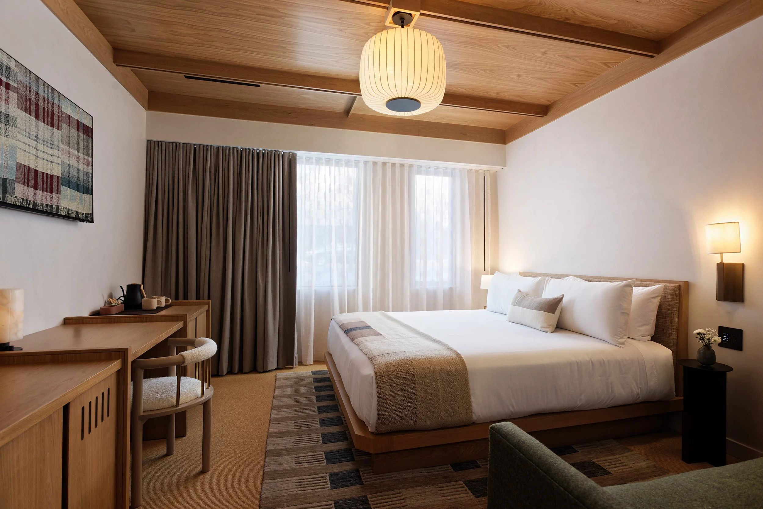MOLLIE comes from HayMax, a leading local development firm, who enlisted award-winning studios Post Company to design the hotel’s interiors and CCY Architects as the project architect. Through a subtle lens of contemporary Scandinavian and Japanese design, the hotel thoughtfully embodies a sense of understated luxury. MOLLIE’s unique accommodations are social yet offer an equal amount of respite. The residential-style guest rooms are designed for the use and ease of each guest, with bespoke amenities including bath products by Swedish brand L:A Bruket, Parachute 100% Egyptian cotton sheets, complimentary Sightglass coffee and an assortment of teas, a Fellow electric kettle, Waterworks fixtures including a rainfall shower, Coyuchi organic robes, and a curated mini bar.